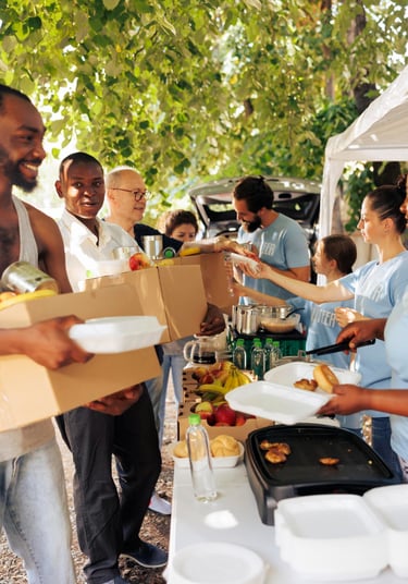 Serving our local community through various initiatives, including food drives, volunteer work, and support programs.